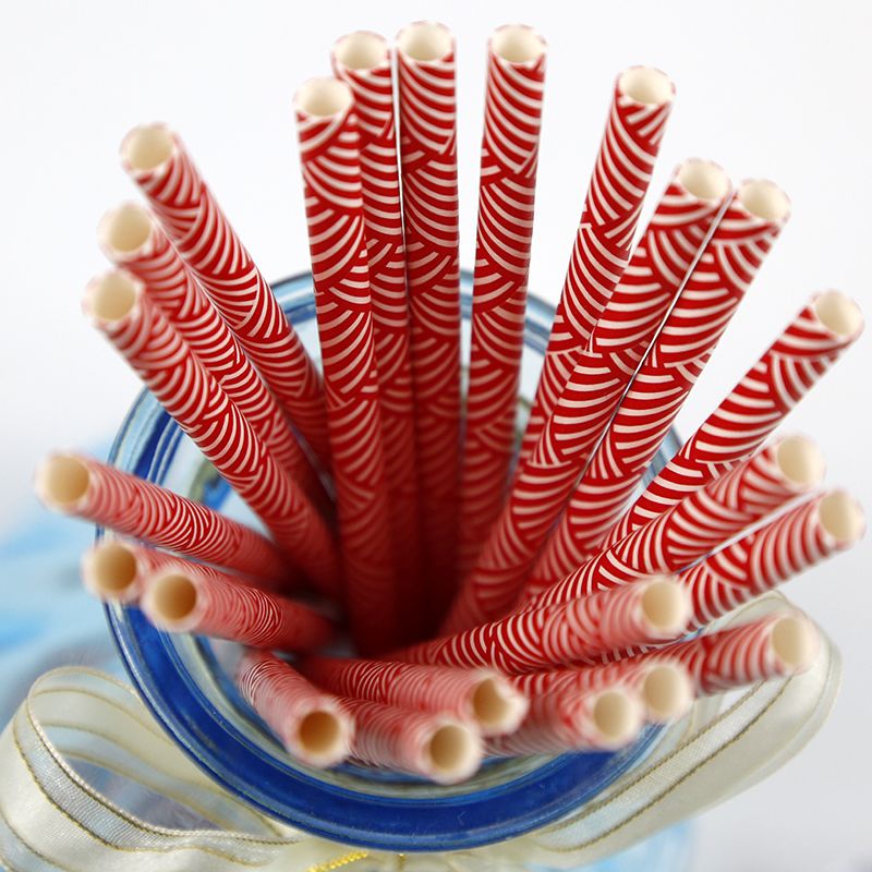 Funny drinking straws decorative paper straw red and white printed